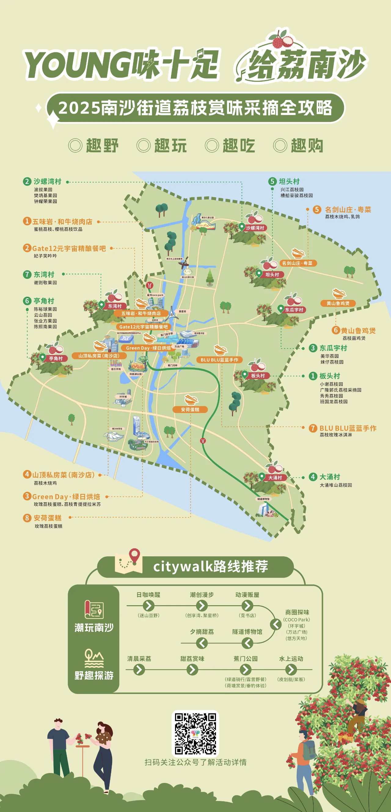 在南沙,来一场说走就走的“荔”程。摘荔枝的同期,既不错通过潮玩南沙线感受citywalk,也不错走野趣探游线在当然中开启健康通顺旅程。