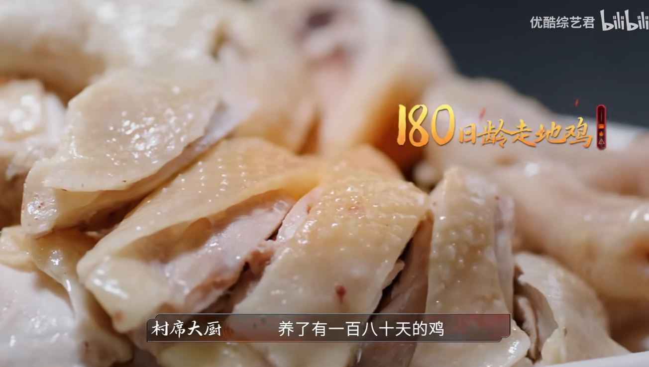 “村席大厨”全进华在节目中说:纯正白切鸡,就要吃鸡味和紧实肉质,半年以上的走地鸡才够格。